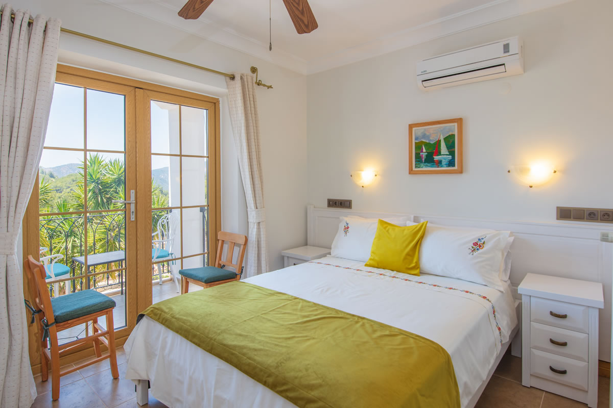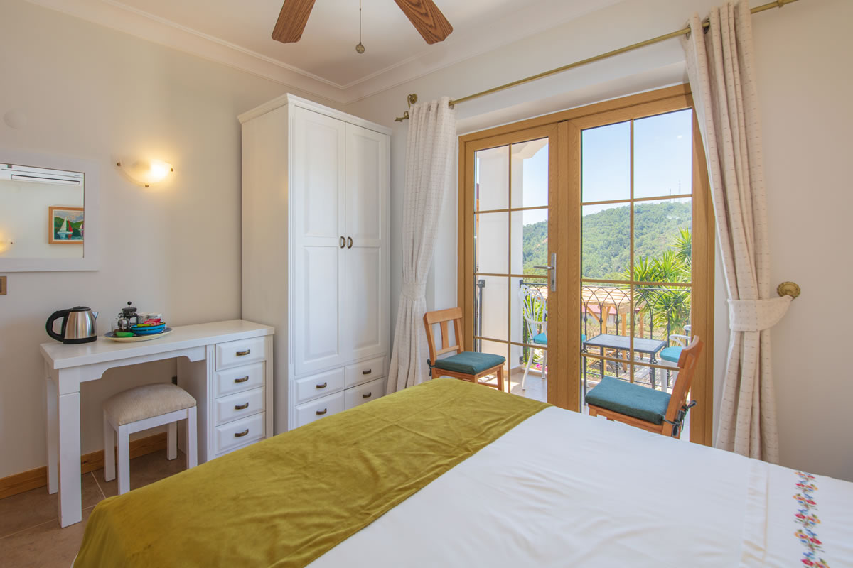 It is a room with a balcony, a double bed and a bathtub in the southwest corner of the building. Its balcony is one of the closest rooms to the lavender, sage and thyme garden. You can also watch the sunset view from the balcony.